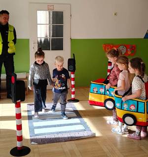 Podczas wizyty funkcjonariusze w przystępny sposób opowiadali dzieciom o podstawowych zasadach bezpieczeństwa – zarówno na drodze, jak i w codziennych sytuacjach. Z wykorzystaniem autochodzika, w formie zabawy, najmłodsi uczyli się, jak prawidłowo przechodzić przez przejście dla pieszych, kiedy można wejść na jezdnię i dlaczego tak ważne jest noszenie elementów odblaskowych.